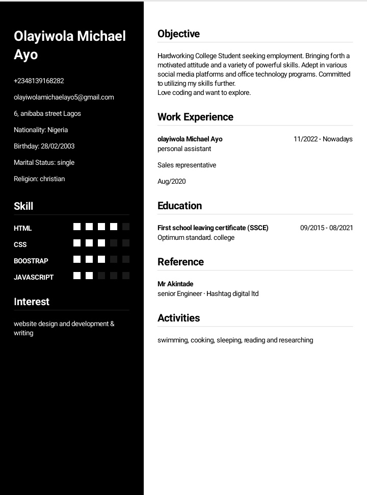 You can check out my professional skills for many years. Buillding and develoiping so many website.Resume attached to it